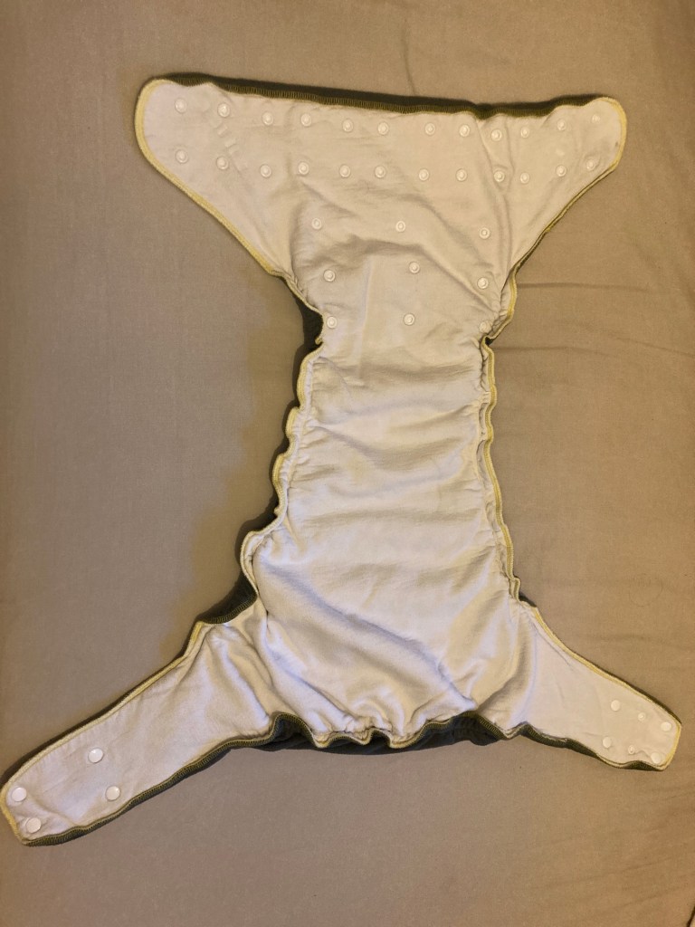 So to the outer layer first. This is a pocket nappy with a PUL waterproof covering and the layer next to the skin is a stay-dry fleece lining. There are 3 rows of snaps to allow adjustment of waist size as well as further snaps to adjust the rise setting, so this can really be tailored to whatever fits you well. There are gussets by the leg holes to help stop leaks too. I am not generally a prolific user of pocket nappies, but this really is a step above the average. On its own the absorbency is obviously minimal, but can be used as a fairly discreet method of ‘just in case’ protection. If you add in the booster it the becomes a very useable means of providing daytime protection, especially if you have the ability to change, as the absorbency will still not be huge with the booster alone.